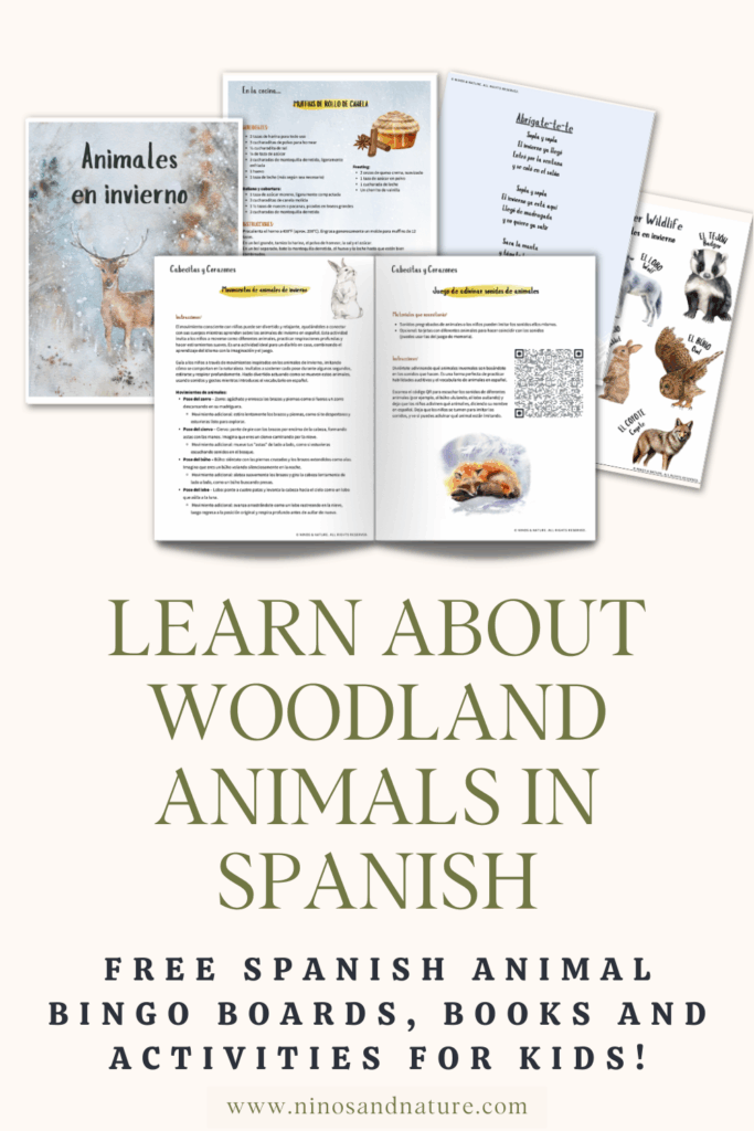 In this post: Get your free Spanish bingo board to help you learn woodland animal names in Spanish with your kids! *Post may contain affiliate links.